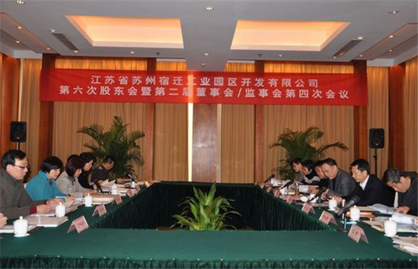 2013年1月18日上午,江蘇省蘇州宿遷工業(yè)園區(qū)開發(fā)有限公司召開第六次股東會(huì)暨第二屆董事會(huì)/監(jiān)事會(huì)第四次會(huì)議。公司股東代表、董事、監(jiān)事參加了會(huì)議,公司經(jīng)營管理班子成員列席了此次會(huì)議,會(huì)議由宿遷市副市長、蘇州宿遷工業(yè)園區(qū)黨工委書記、管委會(huì)主任、公司董事長顧玉坤同志主持。