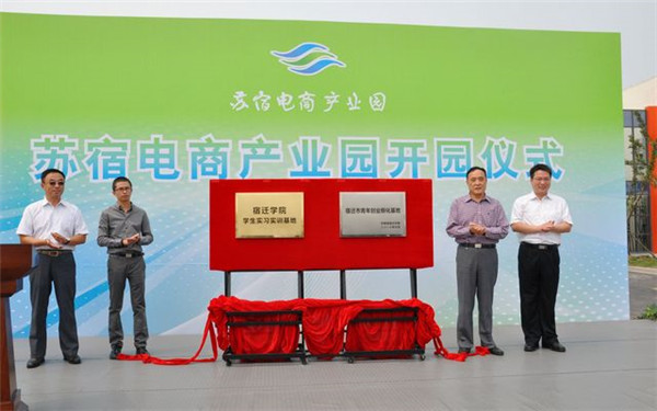 開園儀式上,顧玉坤同蘇州歐富朗電子商務(wù)有限公司總經(jīng)理趙慧、團(tuán)市委書記陳偉、宿遷學(xué)院科技處處長周德廉共同為“宿遷市青年創(chuàng)業(yè)孵化基地”、“ 宿遷學(xué)院學(xué)生實習(xí)實訓(xùn)基地”揭牌。