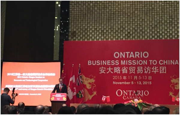 11月6日,JSSD招商團隊代表園區(qū)應邀赴寧參加2015江蘇省—安大略省經(jīng)濟技術(shù)合作洽談會。江蘇省和(加拿大)安大略省兩省政府代表,企業(yè)、協(xié)會、高校代表共300人參加洽談會。