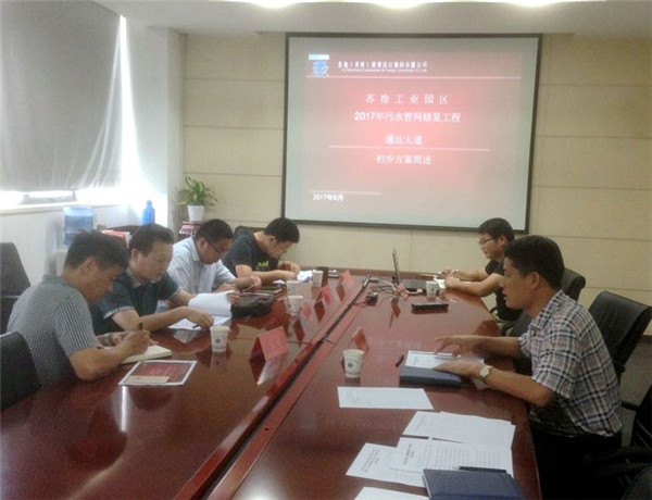 根據(jù)園區(qū)污水規(guī)劃修編意見和2017年建設計劃,開發(fā)公司啟動商住區(qū)通達大道污水維修項目。為確保維修方案安全可靠,近日,開發(fā)公司組織召開通達大道污水管道改造工程方案評審會,特邀設計、建設、規(guī)劃和施工四個方面共五名專家,并邀請園區(qū)規(guī)劃建設局相關(guān)處室人員參加會議。