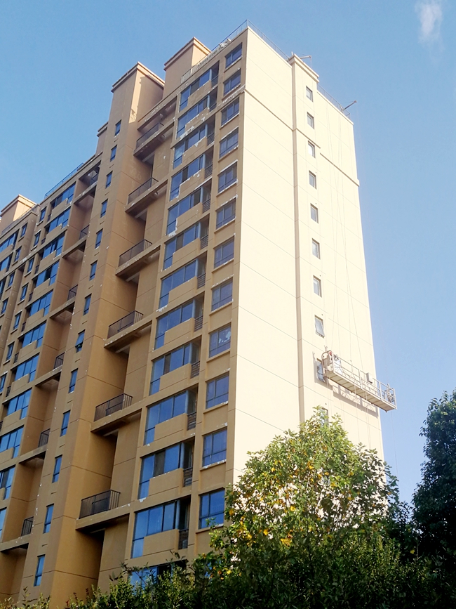 本次出新面積約1.7萬平方米,包含外立面破損修補(bǔ)、外墻鏟除粉刷出新、更換樓宇標(biāo)識等。目前,白領(lǐng)公寓、西楚金地分別完成合同工程量約50%、30%,原本斑駁的外立面一下子變得 “年輕”“靚麗”起來。