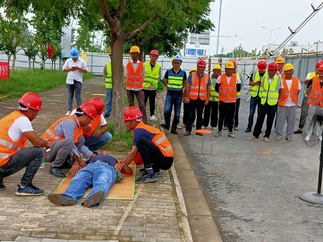 近期,市政工程部在園區(qū)鏡泊湖路東延段施工現(xiàn)場(chǎng)組織開(kāi)展防暑降溫應(yīng)急救援演練。由鏡泊湖路項(xiàng)目班組實(shí)施模擬現(xiàn)場(chǎng),開(kāi)發(fā)公司代建所有市政工程項(xiàng)目現(xiàn)場(chǎng)觀摩學(xué)習(xí)。