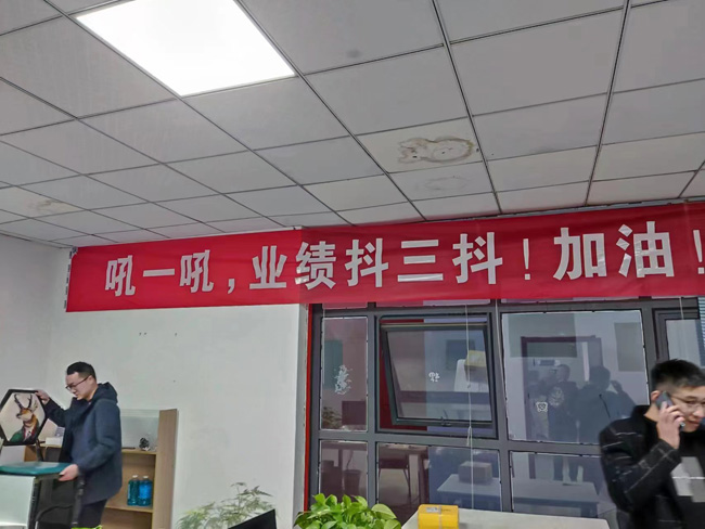 走進(jìn)騰輝家具,一條催人奮進(jìn)的條幅“將來的你一定會感激現(xiàn)在拼搏的你”映入眼簾,四通科技的“不吃飯,不睡覺,敲著鍵盤數(shù)鈔票”條幅簡單明了催人沖業(yè)績,還有的拉出 “吼一吼,業(yè)績抖三抖!” 這些熱血沸騰的條幅巧妙打造“備戰(zhàn)”主題,為“雙11”預(yù)售烘托濃厚氛圍。