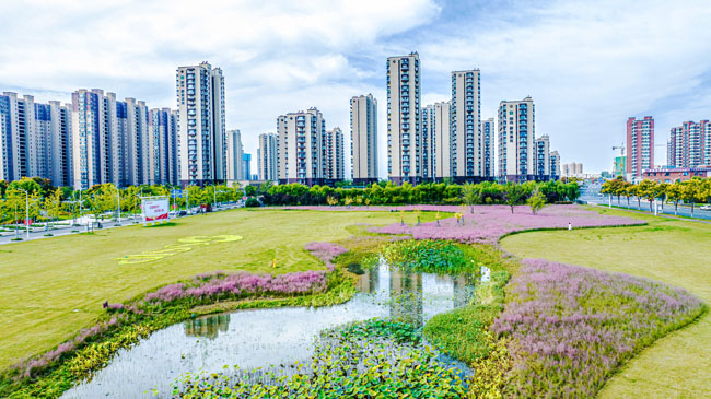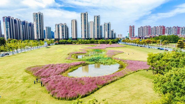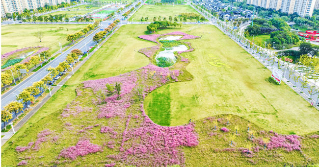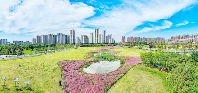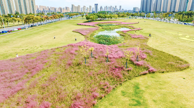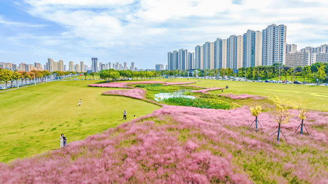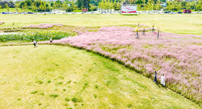 2023年10月1日,蘇宿工業(yè)園區(qū)蘇州公園北側綠地的粉黛亂子草盛開了,一片片粉色花海如夢似幻,吸引游人前來觀賞,樂享國慶假期。