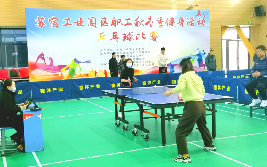 乒乓球比賽現(xiàn)場(chǎng)高潮迭起,選手們圍著乒乓球臺(tái)揮動(dòng)球拍,全力拼搏??蹥?、拉球、削球……參賽選手揮灑汗水,比拼球技,圍觀的職工同事加油打氣,時(shí)不時(shí)傳出一陣陣歡樂(lè)的笑聲。