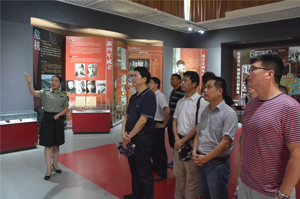 全體黨員干部參觀了紀念館,展館里大量的歷史文獻、珍貴的革命文物和各個時期的新聞圖片、資料再現(xiàn)了新四軍軍部在黃花塘運籌于帷幄之中,決勝于大江南北的豐功偉績。在紀念館大廳,全體黨員面對鮮紅的黨旗,莊嚴地舉起右拳齊聲宣誓,重溫了入黨誓詞。