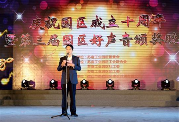 9月29日,經(jīng)過近一個多月的精心準備,慶祝蘇州宿遷工業(yè)園區(qū)成立十周年暨第三屆園區(qū)好聲音頒獎晚會在蘇州公園圓融廣場隆重舉行。園區(qū)工委領(lǐng)導(dǎo)、各局辦負責(zé)人、獲獎人員、企業(yè)代表和園區(qū)居民滿懷喜悅的心情參會,共慶十周年。